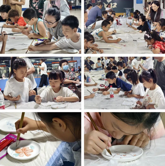 知識浸潤心田,創(chuàng)意亟待揮灑。畫陶瓷盤活動瞬間點燃全場熱情,孩子們化身“小小藝術(shù)家”,手持畫筆,俯身于素白瓷盤之上,青花筆觸勾勒想象,斑斕色彩躍然盤間。稚嫩筆鋒繪就的花鳥、童趣盎然的圖案,甚至天馬行空的抽象創(chuàng)作,每一筆都是童心與古韻的奇妙碰撞。家長或輕聲指點,或共同創(chuàng)作,親子協(xié)作暖意融融。一件件獨一無二的“藝術(shù)品”在歡聲笑語中誕生,承載著親子間的溫暖記憶。一瓷一世界,一筆一童心,讓文化傳承在親子共繪中綻放新芽。